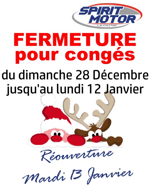 Attention : FERMETURE pour congés du 28 Décembre 2025 au 12 Janvier 2026
