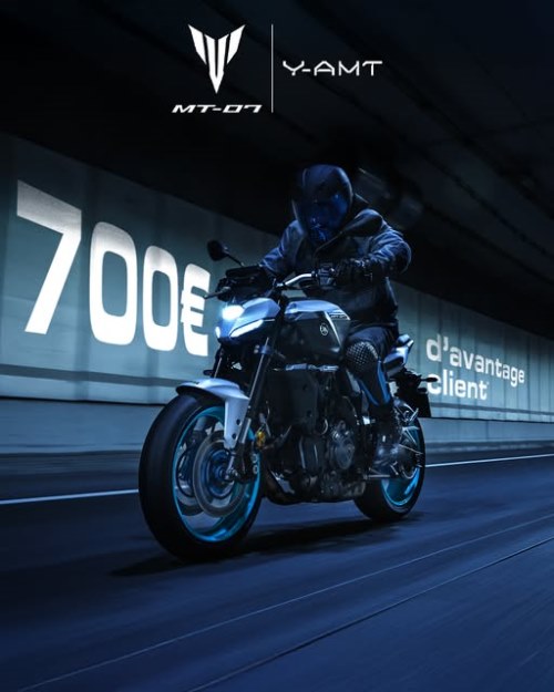 Jusqu’au 31 décembre 2025, profitez de 700 € TTC d’avantage client pour l’achat d’une MT-07, en version standard ou équipée de la boîte séquentielle Y-AMT.